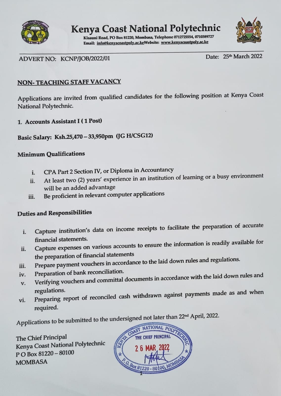 Kenya Coast National Polytechnic On Twitter Accounts Assistant Job Advert Https T Co Q4uqtpoohi Twitter